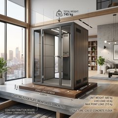 - サイズの決定 : 防音室の外形寸法の 「プラス50〜100mm」 程度の余裕を持たせてください。これにより、縁の部分までしっかりと荷重を受け止めることができます。